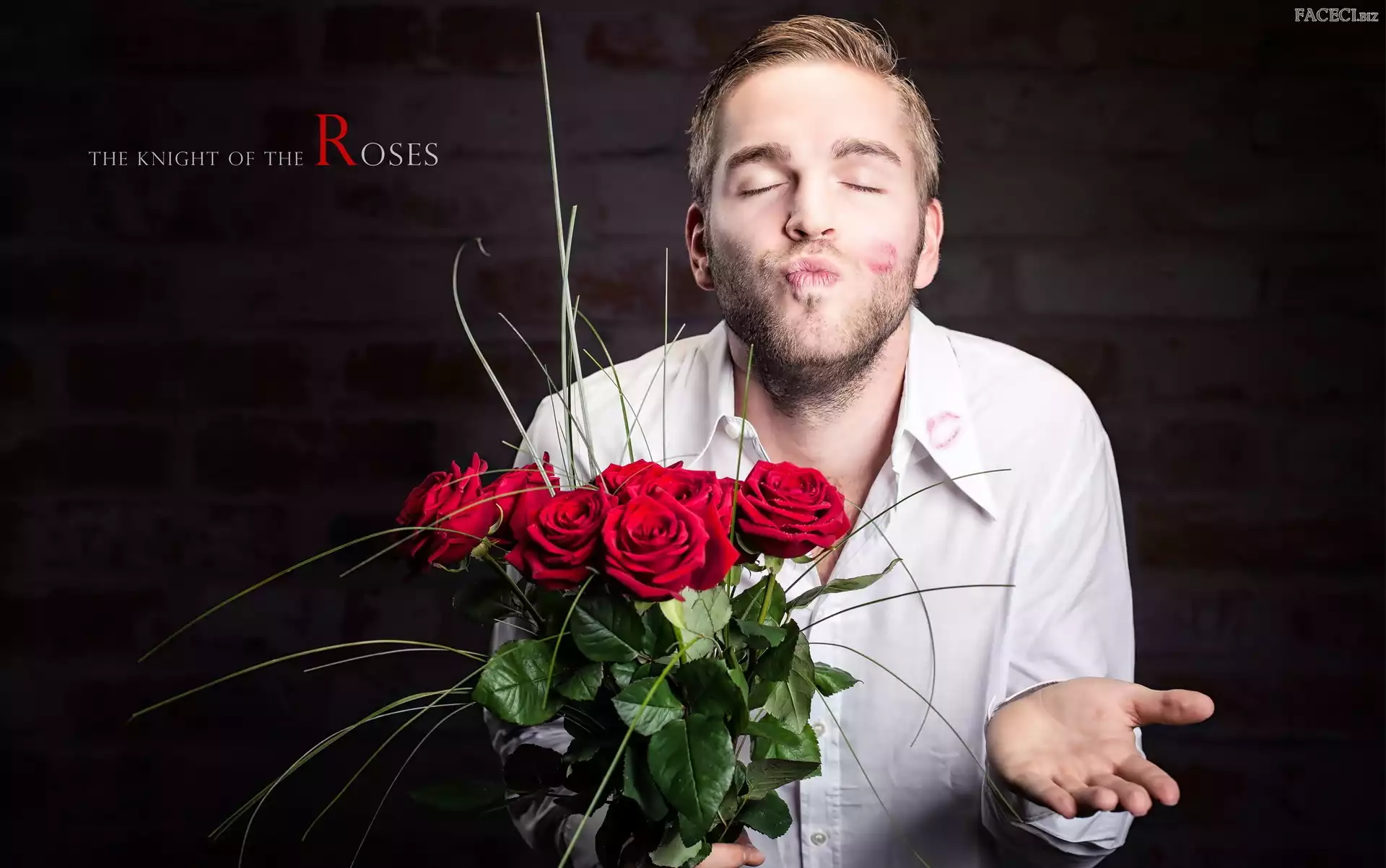 Dzień kobiet, Buziak, Bukiet, Mężczyzna, Róże - faceci.biz
